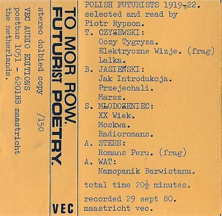 From the Cassette To Mor Row Futurist Poetry (tape, VEC, 1980)